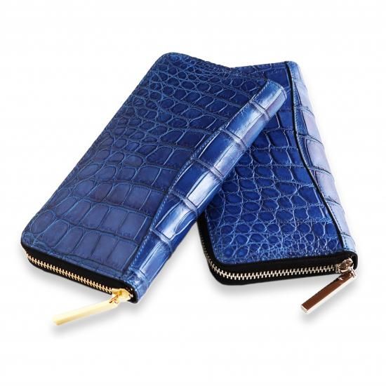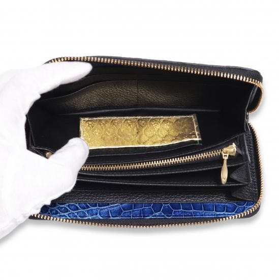 クロコダイルラウンドファスナー長財藍染 |
