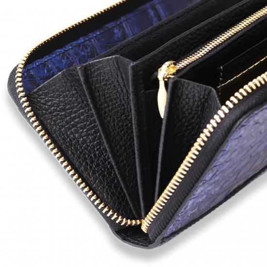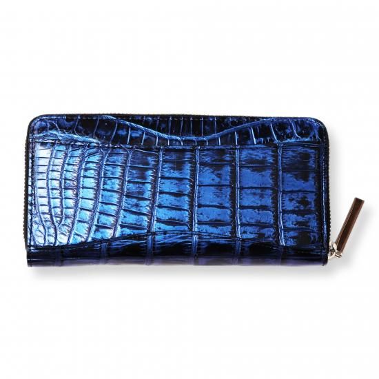 クロコダイルラウンドファスナー長財ミッドナイトブルー |