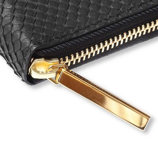 広い表面積を持つラウンドファスナータイプは、ブラックパイソンの柄が美しく映える構造。