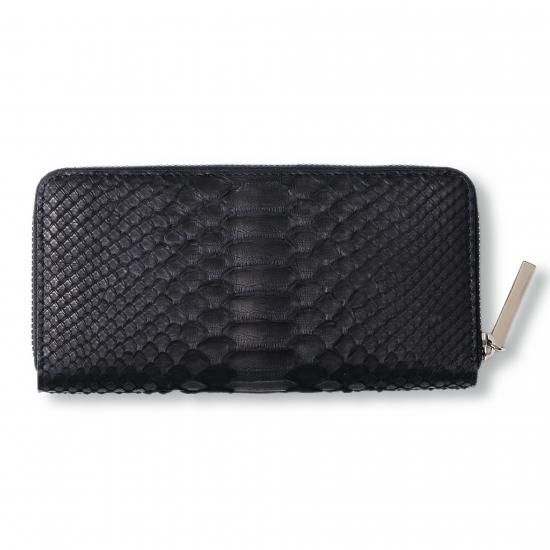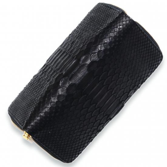 ダイヤモンドパイソンラウンドファスナー長財布ブラック |