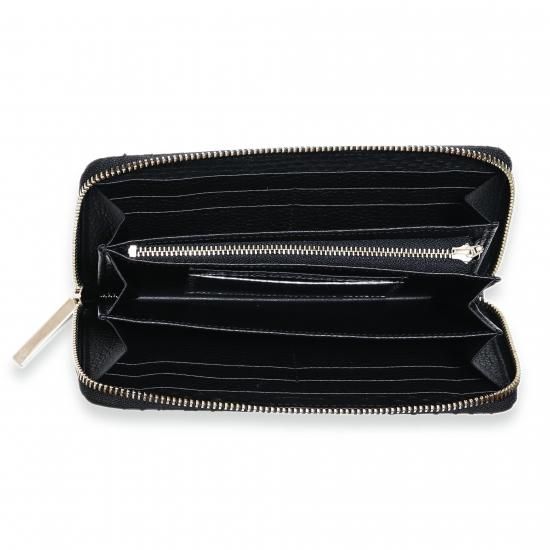 財布の内部には12枚分のカードスロット、3箇所の札入れ、2箇所のオープンポケット、ファスナー式の小銭入れを備えた実用的な構成。