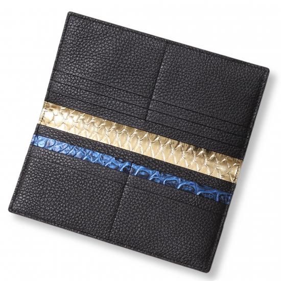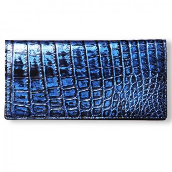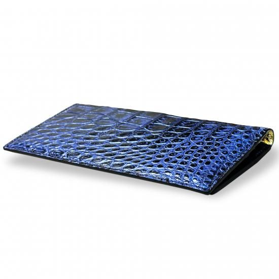 クロコダイル薄マチ長財布ミッドナイトブルー |