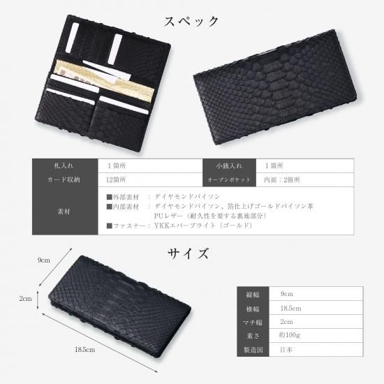 ダイヤモンドパイソン長財布小銭入れありブラック |