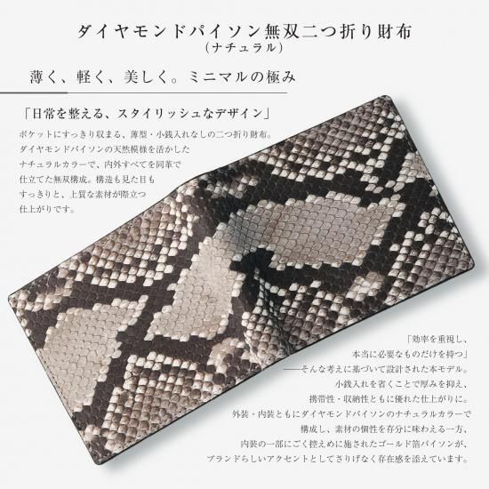 内部には箔仕上げダイヤモンドパイソンを使用。 |
