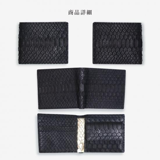 ダイヤモンドパイソン折財布小銭入れありブラック |